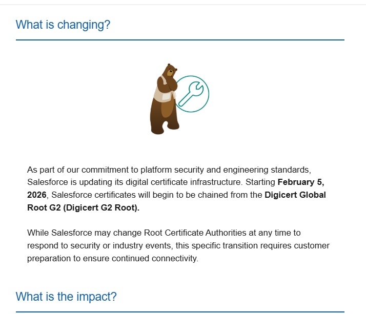 You have probably received a Salesforce notification about Digicert Root Certification change (from Digicert G1 to Digicert G2) on Salesforce side. Don’t throw this email !